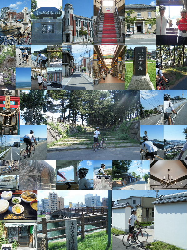 × [PR]上記の広告は3ヶ月以上新規記事投稿のないブログに表示されています。新しい記事を書く事で広告が消えます。 平成23年9月10日(土曜日) 天候 快晴 距離 約105Km 最高高度 約445m サイクリングの 詳細は こらち 写真をダウンロードしたい方は こちら 雨で伸び伸びになっていた大牟田散策のサイクリング。9月の残暑厳しい土曜日に実施しました。 定刻に出発。萩ノ原峠を越え那珂川町へ。南畑ダム、東背振トンネルを経由して吉野ヶ里町へ。山を下り平野を抜け筑後川へ。田圃の畦には珍しい彼岸花が咲いてました。川を渡り城島町、大川市を経由して柳川市へ。新しくできた有明海沿岸道路で大牟田を目指します。矢部川大橋は自転車は通行できず、川にそって散策。中島の朝市をチラ見して出発。程なく大牟田市へ。散策の最初は以前から気になっていたパン屋さんのフランチェスカ。店の雰囲気とパンのこだわりがビシバシ伝わってきます。お店の前の椅子に座って頂きました。次は大牟田市石炭産業科学館へ。思ったより大きな施設。石炭と大牟田の関わりと歴史を勉強。炭鉱施設の見学は時間が掛かりそうなので三池港を見学。明治に開港した設備が今でも現役で使われているのにビックリ。旧三井港倶楽部で食事するつもりでしたが残念ながら昼の部は終了。市内のお好み屋さん「高専ダゴ」で遅い昼食。時計を見ると午後4時を過ぎ。西鉄電車の輪行で帰ってきました。 残暑厳しい9月の土曜日、大牟田を散策。近代化の祖 團琢磨の一生に触れ、おいしいものを食べ、明治から今も現役で使われている港湾設備を見て関心しました。RIDE AND SMILE PR 平成23年9月7日(水曜日) 天候 快晴 距離 約176Km 最高高度 約135m サイクリングの 詳細は こらち 写真をダウンロードしたい方は こちら 今日は長崎街道の起点 小倉常盤橋から筑前六宿を巡るサイクリングの予定でしたがタイムオーバー。立場茶屋銀杏屋でデジカメの電池が切れたので、こちらで宿場巡りは中断。木屋瀬から遠賀川を渡り、植木、猿田峠を越え宗像から3号線で帰ってきました。 早朝、いつもより1時間早く出発。福岡都市高速の側道を香椎方面へ。和白から495号線で古賀へ。古賀で一名合流して再出発。津屋崎の海の中道を抜け、さつき松原を通り、響サイクリングロードへ。波打ち際をサイクリング。突然の轟音。芦屋の自衛隊基地へ降りるジェット戦闘機でした。間近で凄い迫力でした。なみかけ大橋を渡り遠賀川に沿って南下。江川に沿って若松へ。若松駅操作場跡で在りし日の繁栄に驚きつつ町を散策。石炭会館の三日月屋でソフトクリームを味わい休憩。若戸渡船で洞海湾を渡り戸畑へ。国道199号線で一路小倉へ。紫川を渡り、いよいよ長崎街道の起点常盤橋へ。伊能忠敬の測量200年記念碑を見学して出発。橋を渡り早速昼食。室町筋を進み長崎街道の宿場巡りの開始と思いきや、旧道は甘くありません。直ぐに道が判らなくなり右往左往。元の道へ戻り時間のロス。水かけ地蔵辺りから旧道探索のコツをつかみスムーズに走れるようになりました。なんとか黒崎宿へ。アーケード街を抜け曲里の松並木へ。涼天満宮で涼を取り休憩。立場茶屋銀杏屋に立ち寄り、二階や大銀杏を見せて頂くも、デジカメの電池が終了。時間も4時を過ぎたので、宿場巡りは諦め帰ることに。 長崎街道の旧道を巡るサイクリング。突然曲る旧道に手を焼き、時間切れで玉砕。今度は輪行で小倉から出発だ。とリベンジを誓いました。RIDE AND SMILE