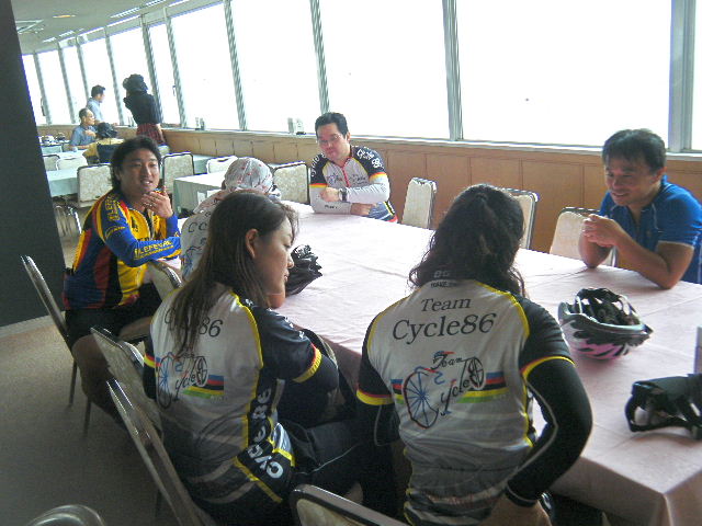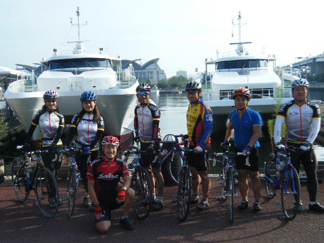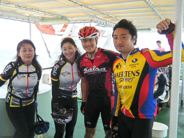 10月16日~18日・23日~25日に福岡市観光課の後援で御供所・冷泉ライトアップウオークが開催されます。承天時・東長寺・妙楽寺の建物や庭園をライトアップし、幻想的な光が博多の町を魅力的に演出します。 週末の夜、3つのお寺をサイクリングで巡り、見学しましょう。自転車は通勤の自転車やMTBで結構です。 多数の参加お待ちしています。 御供所・冷泉ライトアップサイクリング 日程 平成21年10月16日(金曜日) 集合場所 冷泉公園 場所の詳細はこちら 集合時間 午後6時 費用 入場料 800円(前売り券は600円) その他 見学終了後、カジュアルダイニングNANAKURAさんで食事の予定です 時間が許す方は、是非ご参加下さい。 装備 ライト類・カギ は必ず準備お願いします。 御供所・冷泉ライトアップウオークの詳細は こちら ご参加の方は、コメントで10月13日までに書き込みお願い致します。 平成21年9月27日(日曜日) 神様の視線でサイクリングを見てみたい方は、 こちら 天候 快晴 のち 曇り 参加 7 名 走行距離 約 98 Km (渡船15Km) 最高標高 132 m 渡船 行き:11時15分 帰り:13:00 フェリーで25分 いつもの場所に集合です。 本日快晴、無風、船で島に渡るには 絶好の日和です。 久しぶり参加のN原さん・サイクル 姫、女性2名も参加です。 店長さん、新車での参加です。 ドイツのCUBEのカーボンです。 市内の信号の多さに閉口しつつ、 ベイサイドプレイスへ到着です。 九州の港の玄関です。 島へ渡る船をバックに街灯がある プロムナードを再出発です。 都心の渋滞を避ける為、都市高速 の側道を通り香椎浜に到着です。 高架で陽が遮られ涼しく走れます。 香椎浜から人工島と和白干潟を眺 めつつ和白からは、旧3号線経由 で快適にサイクリングを楽しみまし た。 乗船時間より1時間位早く着きました。 店長さんの新車試乗会や休憩をしていたら いつの間にか乗船時間です。 渡船代¥500+自転車¥300です。 自転車は係りの方が、甲板の壁側に紐で 固定してくれます。 船での移動時間は約25分です。 カーペットでごろ寝ができる部屋 ・TVが見れる座席の部屋・屋上の 景色が見えるテントの座席に分か れています。 屋上で潮風に当たり船上気分を 満喫しました。船から大島を望み ます。 島は海底から突き出た山の頂部 分です。大島もしかり! フェリーターミナルで記念写真。走り 出すと直ぐ上り坂です。逆に平地は ターミナルの辺りだけです。 峠を下ると緑のアーチの向こうに 海岸が見えてきます。津和瀬に到 着です。小さな入江で記念に撮影 です。ここからまた急坂です。 坂の途中で神崎鼻の景勝が見え てきます。坂の頂きから神崎灯台 に向います。 かれていました。ここからの景色は 素晴らしいの一言です。 左側は断崖絶壁で、火曜サスペン ス劇場に登場しそうです。 右側は海岸線と牧場が広がってい ます。 大島サイクリングは、ターミナルに 戻る途中パンクで焦りました。 チームワークでF1並に素早く修理、 無事に帰りのフェリーに間に合いま した。 待ちに待った昼食は神湊スカイホ テルの11階、スカイラウンジです。 サイクリングした大島も望むことが 出来ます。景色も味のうち! 料理ですが、今回はホテルお勧め のサービスランチ¥1100を頂きま した。ボリュームタップリでした。 |
