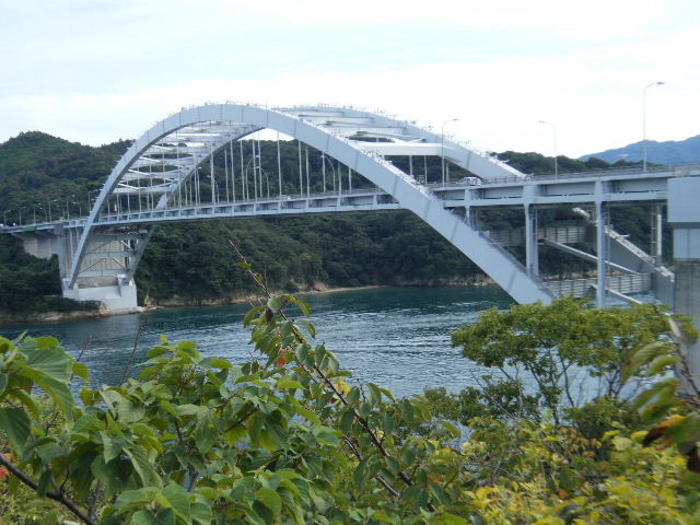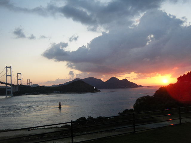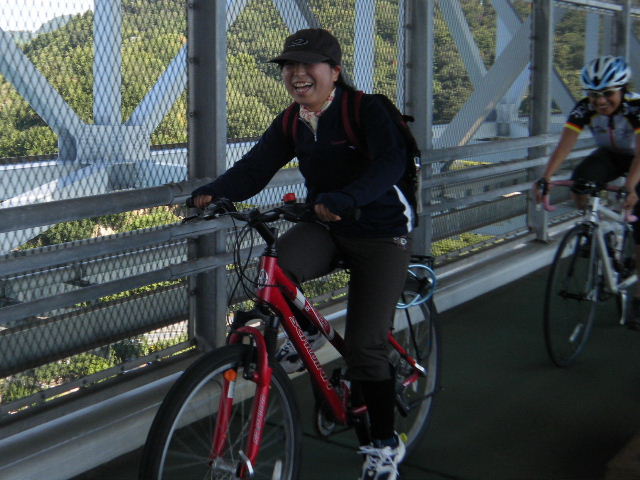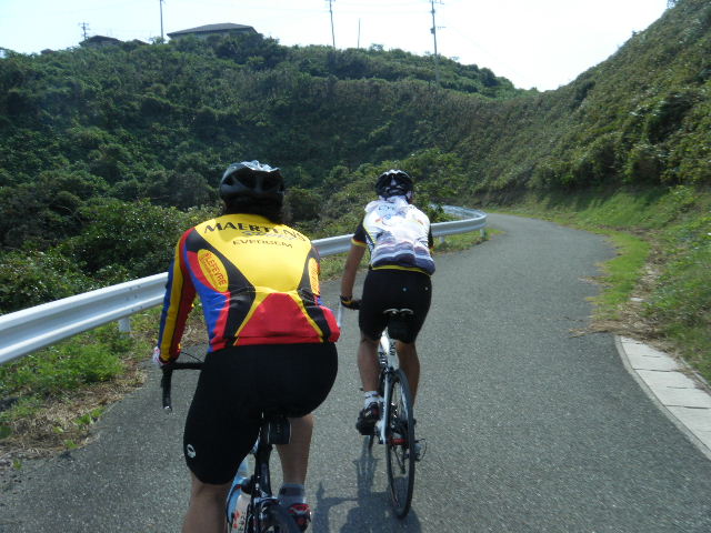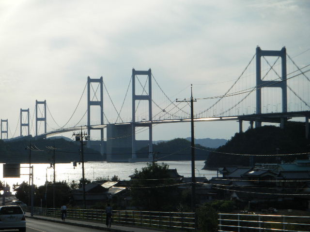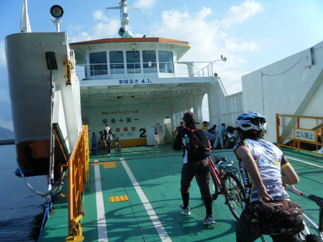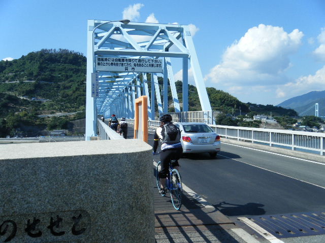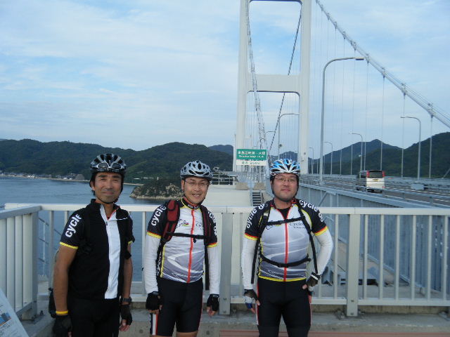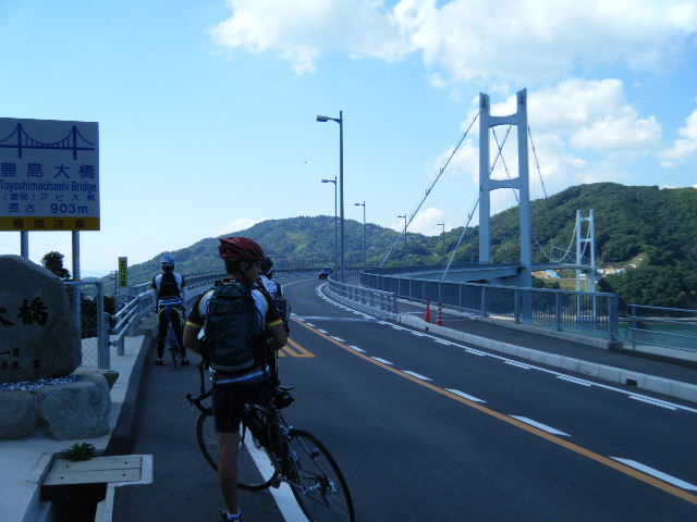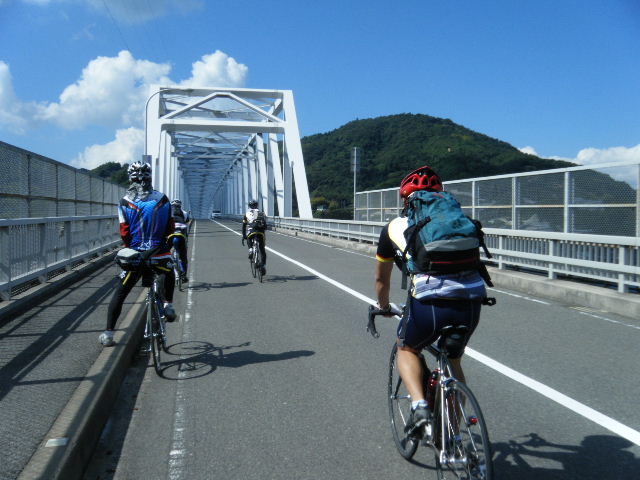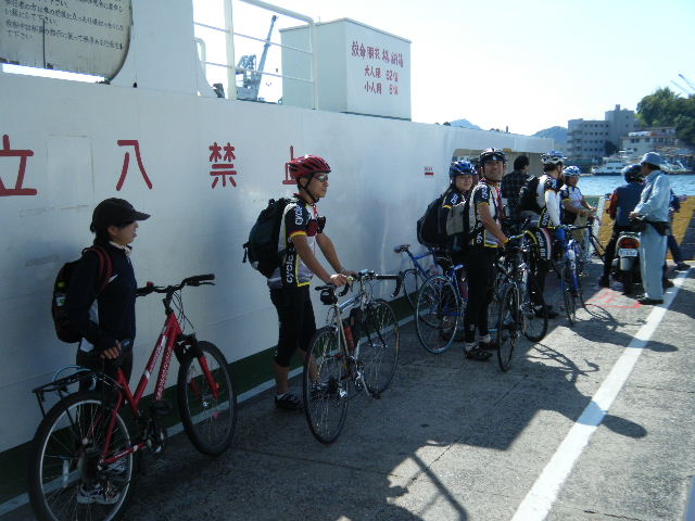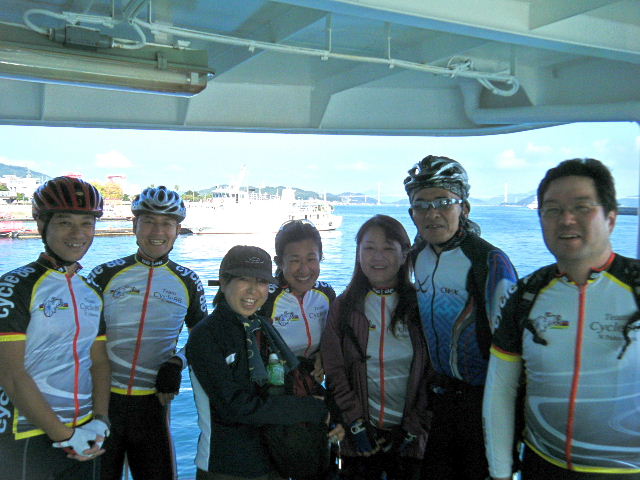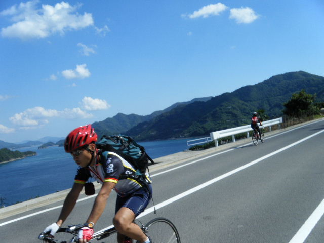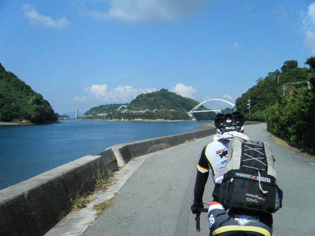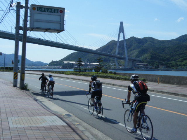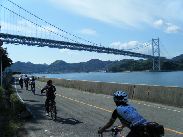 × [PR]上記の広告は3ヶ月以上新規記事投稿のないブログに表示されています。新しい記事を書く事で広告が消えます。 平成21年10月12日(月曜日) 神様の視線でサイクリングを見てみたい方は、 こちら 天候 快晴 参加 9 名 走行距離 約 86 Km (渡船 約24Km) 出発 サンライズ糸山 輪行 広島駅~博多駅 のぞみ臨時 17時19分発 18時23分着 早起きしてサンライズ糸山のお部屋から来島海峡の日の出を鑑賞です。今日も良い予感がします。早速身支度をすませ朝食のバイキングです。7時30分に出発で、今治港の渡船場に8時10分に到着しました。せきぜんフェリーで岡村島まで自転車共々990円なり。期待に胸を膨らませ乗船です。 船は8時25分に出港。これから岡村島まで1時間20分のささやかな船旅です。天気は快晴、海は凪、海面がキラキラ光っています。来島海峡大橋を船から見上げ、昨日の走りを反芻して思わずニンマリしました。船から見る瀬戸内の島なみに見とれているといつの間にか来島海峡大橋も小さく見えるばかりに。 船は小さな島の港に着いたかと思うとすぐ出港で、繰り返すこと3つ目の島が岡村島です。 港は静かで海面はコバルト色に底が透けて見えます。いよいよ2日目のサイクリング開始です。 岡村島から2つの無人島を結ぶ小さな3つの橋を越えて大崎下島へ至ります。岡村港から程なく小さな橋と島々が見えてきます。海は湖のたたずまいです。最初の橋に差し掛かると、橋の真ん中に愛媛県と広島県の境界線が引かれています。3つ目の橋の上で立ち止まると潮騒の音が聞こえてきました。 大崎下島の静かな海辺を見ながら進んでいると、蜜柑の集荷場で「搾りたてオレンジジュース」の張り紙発見!早速、2種類のジュースを味見です。清見オレンジ ジュースの品評会があれば金賞間違いなしです。モチ御代です。一杯100円なり。ここのおじさん、本当に話好き。観光部長に推薦しときます。 ここは江戸から明治まで、潮待ち・風待ちの宿場として大いに栄えた所です。古き時代が平成の今に真空パックされています。 街の路地は狭く車での観光はムリです。自転車がベストです。 本当はジックリ時間を掛けて散策したいところですが・・・ 石の灯台 倉のある屋敷 神社 お寺 短い時間でしたが歴史を肌で感じつつ街を散策しました。 街の散策の後、島の南側をのんびりサイクリングです。遠く四国を望みながら、次の豊島を目指しました。 豊浜大橋を渡り豊島です。ここでは海岸線を通らずに、北側の蜜柑畑を抜ける農道を通りました。きつい上りを越えた小さな頂からは瀬戸内の島なみと遥かに広島県川尻町辺りが見渡せます。直後に、海岸線まで一気に下る爽快な道が続きます。 豊島の海岸線を進むと丘の上に豊島大橋が見えてきます。しまなみ海道のサイクリングロードとは異なり、とびしま海道は一般道を走りますので上りの勾配は結構きついものがあります。逆に一般道をサイクリングしている我々には此方の方が自然に感じられます。 豊島大橋を渡るといきなりトンネルで面喰ってしまいました。上浦刈島は、他のとびしま海道の島と趣が違います。島の山肌は、耶馬溪のように木々の間から岩が露出しています。また海岸線も絶壁と砂浜の入り江が交錯しています。 お昼となり、お腹が空いてきました。昼食は絶景ポイントの駐車場で、移動販売の原うどんです。天婦羅うどんを頂きました。スープと具が絶妙です。この後、多くの方が車で来店されましたが、天婦羅は売り切れになりました。ご免なさい。でも美味しかったです。 浦刈大橋を渡ると、とびしま海道も最後の島、下浦刈島です。ここは、島に渡った最初の信号を右折し、海岸線の旧道を走りましょう。そのまま直進すると、直ぐに安芸灘大橋に出ちゃいますよ。注意です。 ここでは江戸時代、朝鮮通信使が松濤園で宿泊していたそうです。他に蘭島閣美術館、丸本家住宅などを見 ここ下浦刈島は幕府や藩などの支配者階級の処、先に見学した大崎下島の御手洗は庶民階級の処。同じ島名に下があり、対比が興味深く面白かったです。 楽しかった瀬戸内の島を巡るサイクリングもいよいよ最後の橋 安芸灘大橋を渡るばかりになりました。橋の手前の公園から名残を惜しんで景色を眺めました。 橋を渡ってからは、海岸線とトンネルを交互に経て呉市内に到着です。ここで2日間ご一緒したYORIさんのお友達とお別れです。次の機会に、またご一緒できますように! 呉からは、江田島を見ながら海岸線を進みます。海岸線を離れても意外にすんなりと広島駅に到着しました。早速金券ショップで帰りの新幹線回数券を買い、のぞみ17時19分臨時便で帰りの手配です。手早く輪行をすませ新幹線で帰福です。2日間楽しいサイクリングでした。RIDE AND SMIL !!! PR 平成21年10月11日(日曜日) 神様の視線でサイクリングを見てみたい方は、 こちら 天候 快晴 参加 9 名 走行距離 約 72 Km (渡船400m) 輪行 博多駅~広島駅 のぞみ152号 7時12分発 8時23分着 広島駅~新尾道駅 こ