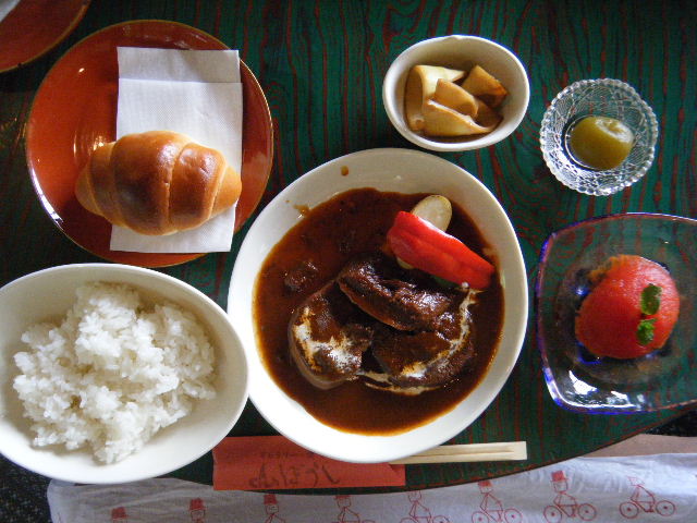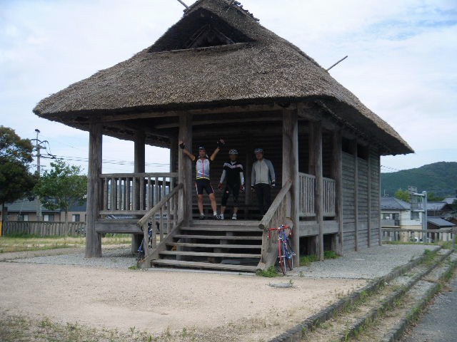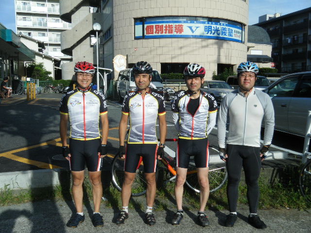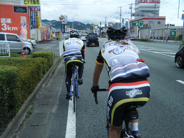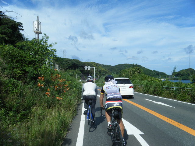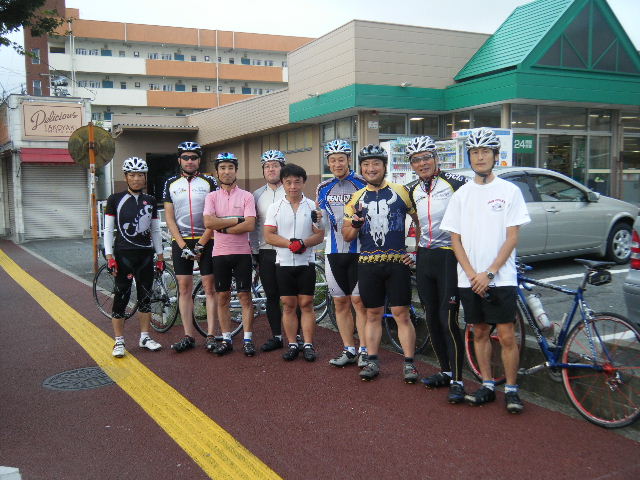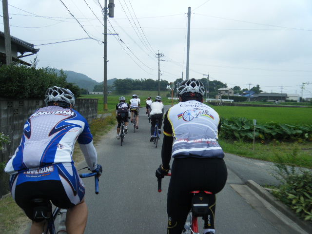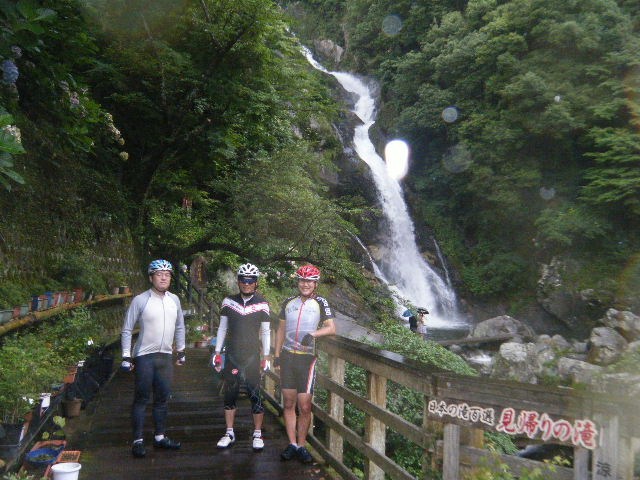 待ちに待った阿蘇望でしたが、天候不順により不参加となりました。 平成21年7月19日(日曜日) サイクリングの詳細は こちら 天候 晴れ時々曇り 一時 雨 参加 5 名 走行距離 約 125 Km 最高標高 150 m いつもの場所に集合です。 前日の降水確率は100%でしたが、奇跡的に晴れました。 4名ですが、M上さんとNONさんが集合場所に来てくれました。 途中、今宿でNishyさんが合流で本日の参加は5名となりました。 唐津に向けての海岸線は、強烈な向い風です。 向かい風にはチームプレイで対抗です。 先頭交代を短い間隔で繰り返し、 スピードを落とすことなく走ります。 虹の松原に入ると、強烈な向い風も収まりました。 早くも蝉の鳴き声です。 梅雨は明けていませんが、早くも夏モードです。 鏡山の横を抜けて相知方向へ進路を変えます。 途中雲行きが怪しくなりました。 見返りの滝へ向かう上りに差し掛か った所でついに雨になりました。 でも、上りでオーバーヒートぎみの 体には心地よく感じました。 見返りの滝は、水量もあり、マイナ スイオンをたっぷり浴びました。 行きがけに森の横に草ぶきの屋 根が見えていたので気になって帰 りに寄りました。 森に見えたのは前方後円墳でした ミニ吉野ヶ里のような建物があり、 埋葬の石室が見学できました。 虹の松原の住宅地の中にある ケーキ屋さんで休憩しました。 たまご農場が母体ですので卵をふ んだんに使ったものがお勧めです。 ロールケーキとパウンドケーキを、 離れの和室で庭を眺めながら頂き ました。 見帰りの滝は10時半に着き ましたが、お店がまだ開いてま せんでした。 帰路は追い風で有り得ないス ピードで福吉まで戻りました。 福吉の山ぼうし で昼食です。 に改装したところです。 来店した事をドラを鳴らして伝え ます。 2階の和室でくつろぎます。大正 モダンな感じがGOODです。 タンシチューを頂きました。 器がすばらしく、シチューのソース はバターロールで綺麗にしました! |