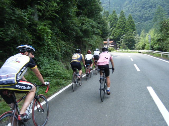 清流館を出発した後、 バトル開始です。 皆全開でもがきました。 あっという間に 美奈宜の社に到着です。 おいしいコーヒーで休憩です。