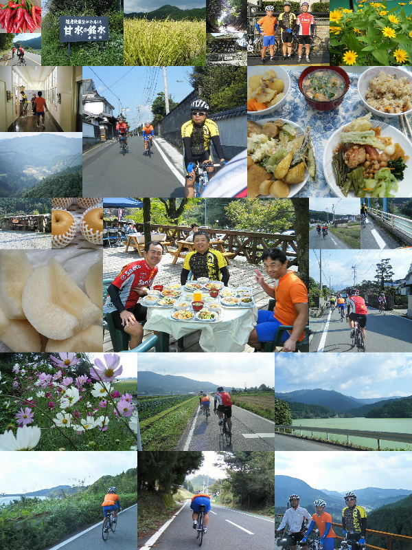 × [PR]上記の広告は3ヶ月以上新規記事投稿のないブログに表示されています。新しい記事を書く事で広告が消えます。 平成23年10月16日(日曜日) 天候 晴れ 距離 約110Km 最高高度 約440m サイクリングの 詳細は こらち 写真をダウンロードしたい方は こちら 朝も寒くなりました。今日は朝倉 清流館の今年最後の営業日 収穫祭で山菜バイキングを頂くグルメサイクリングです。 早朝は肌寒くなってきました。朝日を浴びて定刻に出発。外環状線と通称5号線経由で筑紫野へ。二日市の温泉街を抜け、針摺の丘を越え、田園を南へ。日田へ抜ける旧街道を通り筑前町へ。花乃往還にある公園でトイレ休憩。ここから秋月を経由して江川ダムへ。ダム手前の産直のお店で、取れたての旬の梨「新高」を剥いてもらい頂きました。お土産に巨大な椎茸や唐辛子を買う方も。急坂を上がりダムの堰堤へ。ダム湖に沿って上流に向けてサイクリング。湖面を抜ける風に秋を感じます。ダム湖に別れを告げ、渓流。に沿ってを上流へ。道端には栗の毬が機雷のように散乱。器用に避けて進みます。小石原町に入って直ぐの公園を目印に右折。峠越えでたかき清流館へ。少し上ると峠のピーク。緑のトンネルを抜け、鬱蒼とした杉林、九十九折りの急坂を下ります。途中で見晴らしの良いカーブで記念撮影。慎重に山を下りました。清流館は今年の最終日なので、到着時には駐車場は一杯。広場では、鶏や山女の串焼きの出店、綿菓子や産直の物産館なで大賑わいでした。校舎の中でいつもの山菜バイキングを、今日はテラスで頂きました。超大盛り ご馳走様でした。帰りは寺内ダムを経由して秋月へ。行きと同じ道を元気に戻ってきました。 秋の晴天の一日。朝倉のたかき清流館の収穫祭。山菜バイキングを頂き、朝倉の秋の恵みを実感しました。途中で食べた梨も最高でした。RIDE AND SMILE PR