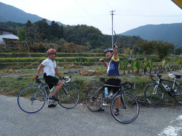 × [PR]上記の広告は3ヶ月以上新規記事投稿のないブログに表示されています。新しい記事を書く事で広告が消えます。 平成21年11月8日(日曜日) 神様の視線でサイクリングを見てみたい方は、 こちら 天候 晴 のち 曇り 参加 9 名 走行距離 約 110 Km 最高高度 465 m またしてもGPSロガーの不調(充電不良の様子)のため、飯塚から福岡の帰りの記録が出来ませんでした。写真のみでご勘弁を。 城南区の島廻橋サニーに集合です。 先週とは大違い。初秋の穏やかな快晴の天気です。本日9名の参加です。管理人はジャイアントの新車で参加です。今日は記録より走りに集中させて頂きました。 市内の信号多さにうんざりしながら、篠栗を目指します。201号線バイパスの金立交差点を左折して、いよいよ猫峠の登りです。途中の公園で鳴滝ダムを望みます。ここでは朝早くからバーベキューをしている方々がいらっしゃって、ビールがうらやましい~です。 朝日を浴びながら更に上ると、呑山観音寺に到着です。数名アタックをして通過した模様。待つこと数分、峠の頂から戻ってきました。ご苦労様です。 本堂で御参りの後、見上げると銀杏の木がすっかり紅葉(黄葉?)してました。この辺りは高いので、秋も深まっているんですね。 お土産を買ったり、お線香で身を清めたり、写真を撮ったり・・・下の参道のお茶屋さんで休憩することになりました。ご主人のご好意で自家製杵突きのぼたもちを頂きました。盛すしと稲荷すしを頂いて、今時150円也 ご主人、有難うございました。 呑山観音寺から暫し上ると猫峠の頂です。海抜447m。頂でこの先のルートを確認です。頂からは山並みを縫うように急坂を下り、県道に突き当たります。ここを右折して八木山展望台を目指します。なだらかな上りで、高原のさわやかな空気を楽しみつつ走ります。 飯塚観光、其の一 です。 筑豊の石炭王 旧伊藤伝右衛門邸を見学です。桁外れの大きさと和洋折衷の佇まいに圧倒されました。4つの住居棟、3つの蔵、池と川と橋がある庭園、すべて見事に調和しています。お庭は白蓮のお部屋からの眺めです。 サイクル姫は白蓮さんの大ファンで前から伊藤伝右衛門邸に来たかったそうです。望みが叶いました。白蓮館で白蓮の詩の前でパチリ。白蓮のお部屋で白蓮が使っていた帯の前でパチリ。大満足の様子です。 柳原白蓮については こちら 飯塚観光、其の二 です。 筑豊地方が炭鉱景気に沸いたころは、30余りの劇場があったそうですが、今では嘉穂劇場だけになってしまいました。広い劇場内は、柱が一本もなく、炭鉱の坑道で培われた建築技術が生かされています。 観光も無事終わり、お腹が空きました。今日の昼食は、嘉穂劇場の前にある 若鳥 さんです。夜の居酒屋の時間帯は座れない程の人気店ですが、日曜日の昼間は総勢9名でも予約なしでOKでした。 さて、料理の方は・・・ 鳥皮 柚子胡椒とポン酢で 鳥刺し ポン酢で 鳥肝 白ごはんが欲しくなります から揚げ ポン酢でさっぱりと お吸い物 味ごはん 追加で一品料理も頼んじゃいました。 飯塚の観光と食を楽しんだ後は、峠越えです。なにせ盆地ですから。飯塚は、行きも帰りも峠越えです。ハイ。八木山バイパスと平行したショウケ越え方向に走ります。ここのトップはKカメラマンでした。余裕のガッツポーズです。 大野越えの分岐からは、201号線に出るまでオール下りです。あっと言う間に篠栗に到着です。今日は峠越えの走りに、飯塚観光に、食事に、思う存分楽しみました。RIDE AND SMIL ! PR