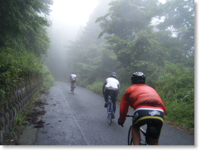 × [PR]上記の広告は3ヶ月以上新規記事投稿のないブログに表示されています。新しい記事を書く事で広告が消えます。 平成21年6月28日(日曜日) サイクリングの詳細は こちら 天候 晴れ ところにより 曇り・霧雨 参加 4 名 走行距離 約 65 Km 最高標高 高度 865 m いきなり九千部山ではありません。 ウオーミング・アップで萩の原峠を登ります。 実は一気に200m登る心臓破りの峠です。 萩の原峠の那珂川町側は路面状態が良好で 遠くまで見渡せます。 安心して飛ばせます。 店長さ~ん 70k近く出てますよ~。 南畑ダム方向に進路を変え、中之島公園の先から 左に進路を取ります。いよいよ九千部山の上りです。 うっそうとした森の中を抜けていきます。勾配は一定で 夏でも涼しく走れます。 上り初めて20分ぐらい経ったでしょうか 木漏れ日から、辺りが霧に覆われてきました。 雲の中に入ったようです。 午後は皆さんそれぞれ用事があるとの事です。 食事会は中止です。 帰る途中、山田の交差点近くにあるNANA CAFE で休憩です。 ここはベーグルパンが有名です。 NANA CAFE の公式ホームページは こちら スモークド チーズ と 胡桃 の ベーグルをいただきました。 もちもち 出来たてで ほかほか で最高でした。 那珂川沿いの公園の木陰でいただきました。 今日の九千部山岳サイクリングも無事終了しました。 梅雨の晴れ間にサイクリングが出来て感謝です。 PR