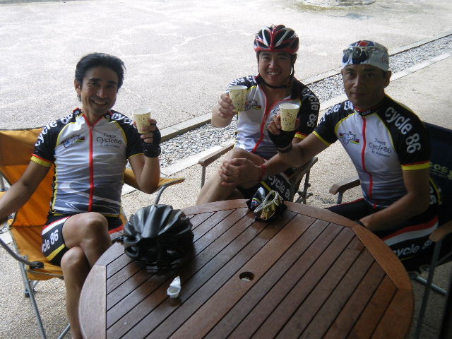 × [PR]上記の広告は3ヶ月以上新規記事投稿のないブログに表示されています。新しい記事を書く事で広告が消えます。 平成21年7月5日(日曜日) サイクリングの詳細は こちら 天候 曇り のち 雨 参加 11 名 走行距離 約 120 Km 最高標高 430 m 9名+途中合流2名の11名です。 初参加の方の紹介です。 左から Nishyさん 鹿児島さん NONさんです。 今後とも宜しくお願いします。 美味しいコーヒーが飲めるとの事で 美奈宜の杜で休憩です。 なんと、自動販売機でした。 侮るなかれ、豆を選び、ミルで挽き、 待つこと2分、この通りです。 元小学校の玄関で記念撮影です。 M上さんが校長先生に見えます。 バイキングまで時間があったので 前の清流で水遊びです。 冷たさが火照った体に心地良し! いただきま~す。 偶然にも物産館の棟上げです。 お餅や5円が撒かれます。 皆さん子供に戻っている模様。 江川ダムの堰堤です。 山の間にそびえ立つ感じです。 湖畔から見える江川ダムです。 遠く古処山や馬見山を望みます。 ダム対岸にある秘密の水場です。 冷たくてまろやかなお水です。 皆、ボトルに詰めます。 ダムの下にある物産館です。 冥加を期待していたのですが・・・ 朝採れトマトを皆で頂きました。 甘くて美味でした。 秋月城下をサイクリングです。 古い町並み 白壁の蔵 アーチの石橋 何故か自転車が似合います。 名物のカレーパンに舌鼓 出来たて アツアツ ウマウマ でした。 今日のサイクリングも 楽しく終了しました。 PR