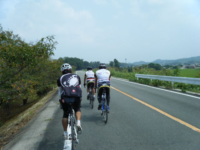 × [PR]上記の広告は3ヶ月以上新規記事投稿のないブログに表示されています。新しい記事を書く事で広告が消えます。 平成21年8月30日(日曜日) サイクリングの詳細は こちら 天候 快晴 参加 11 名 走行距離 約 140 Km 最高標高 600 m 8月も最後の週となりました。 サマータイムの集合もこれで最後です。 今回、新たに参加していただいた3名です。 朝日を浴びてせっせと三瀬峠を 上りました 。全員上り終えて、 本日都合がある2名を見送ります。 三瀬峠からの下りを楽しんだ後、 井手野経由で背振山の麓まで 田園景色を眺めながら走りました。 背振山の上り口にある田中商店で休憩しました。 佐賀のサイクリングチームの皆さんが先に休憩されていました。 地元のグルメ情報や、この先の道の状況など親切に教えて 頂きました。ありがとうございました。 阿蘇望などで、ジャージは見覚えありましたよ! 今後とも情報交換など宜しくおねがい致します。 休憩の後、急な九十九折を下り、吉野ヶ里に到着です。 ここから八女までは、ひたすら田園の平野を走ります。 夏も終わりですが、この夏一番の暑さです。 先頭を交代しながらがんばりました。 とは言え、コンビニで何回アイスを食べたでしょうか! 筑後市から209号線へ左折、 船小屋温泉を目指します。 矢部川を渡り、川沿いに 遊の谷までサイクリングです。 おなかが空いてきました。 川沿いから、遊の谷の看板発見 これを見落としたら永遠に到着は 不可能です。ご注意を! 看板に沿って先を進むと山あり谷 あり。正に なんじゃこら やっとのことで到着です。ここは 秘境です。 いよいよ地鶏炭火焼きを頂きます。 この せせり の量 感激です。 せせり かわ 砂肝 軟骨 野菜 もう食べ切れません。 ごちそう様でした。 おかげ様で皆さん満腹です。 坂を上る気持ちは毛頭ありません。 車通りの少ない道を選んで、暑さと戦いながら帰りました。 皆様、お疲れ様でした。 PR