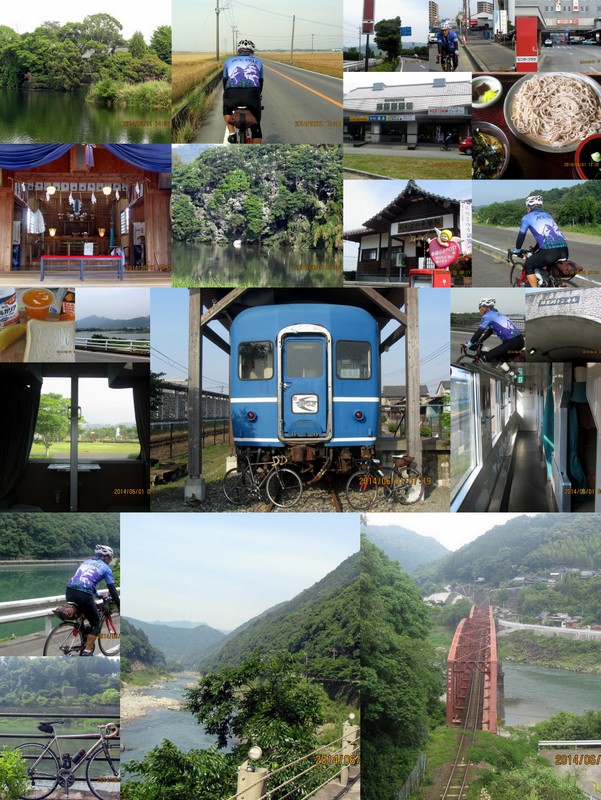 × [PR]上記の広告は3ヶ月以上新規記事投稿のないブログに表示されています。新しい記事を書く事で広告が消えます。 平成26年6月8日(日曜日) 天候 曇り 霧雨 のち 曇り 距離 約82Km 最高高度 約66m サイクリングの 詳細は こらち 写真をダウンロードしたい方は こちら 走りだして30分、雲行きが怪しくなり霧雨の中を走るはめに。堪らず筑前深江のパン屋さん「クラウド」で雨宿り休憩。結局サイクリングは中止。希望者のみ糸島半島をブラブラ帰ることに。さてさてどうなりますやら。 折角なので何かおいしいものを食べようと意見が一致。Cafe Little Britainを推薦したところ私以外行ったことが無いので是非にと相成りました。お店のある芥屋まで糸島の海岸線をポタリング。いつの間にか雨は止んでいましたが、前方の可也山は麓付近まで雨雲が降りてきていて、何時また雨が降り出してもおかしくない状況です。船越湾を抜け内陸へ。暫し進みまた海岸線。この調子で進むと早く着き過ぎです。岐志漁港で休憩することに。姫島行きの渡船や港の様子を写真に撮って渡船待合所へ。そこでは地元の若い夫婦が朝摘み野菜を販売してました。インカの目覚め、グランドペチカetc初めて見る赤いジャガイモ ズッキーニ祭 根が付いた紫が鮮やかなネギなどなど見かけない野菜のオンパレード。やさい屋トラキさん 日曜日の早朝だけコチラで営業されてるそうです。ここは要チェックです。岐志漁港を後に芥屋へ。大祖神社の大鳥居を潜り海岸の堤防に自転車を立てかけ、芥屋大門や玄海灘の景色を眺めて過ごしました。そろそろ11時、いざCafe Little Britainへ。目印の英国旗から路地に入り突き当たり。手入れの行き届いたイングリッシュガーデン。その奥にあるバイクラックに自転車を掛けていると、気づいたオーナーのポールさんが微笑みながら近づいてきて握手。店内に招かれ、フランクフルトとグリンピースのオニオンソース、食後にスコーンとハーブティーのセットを注文。食後、スコーンの頂き方を教わったり、ゆっくりと時間が流れます。満ち足りた気分で店を後に、糸島の海岸線をポタリング。二見ヶ浦の夫婦岩を見物、長垂海岸浪打際を風を感じつつ流し、国道202号線を一路東へ。西新商店街の迷路にあるワタナベナンバンで濃いタル・チキン南蛮のピタパンと日向夏のアイスティーで締めました。 雨で一度は中止したサイクリング。珍しい南米野菜を見たり、英国料理の次は日向の国のB級グルメを食べたりと、ワールドワイドな発見がありましたよね?RIDE AND SMILE PR 平成26年6月1日(日曜日) 天候 晴れ 快晴 距離 約127Km 最高高度 約143m サイクリングの 詳細は こらち 写真をダウンロードしたい方は こちら 九州中央山地縦断サイクリングの二日目 今日は球磨川下り。多良木町から人吉・八代へ。ココから国道3号線で熊本へ。浮島神社で参拝の予定です。 昨日痛飲した麦酒のせいか、揺れない寝台列車のせいか、朝までグッスリです。起きぬけの車窓の風景は止まった公園の遊具。洗面のため廊下に出ると列車そのもの。何か不思議な目覚めです。食堂車?で前日にコンビニで仕入れた朝食を食べ急ぎ出発。球磨川沿いのサイクリングロードで人吉を目指します。途中の流れ込みの度に迂回するため、道は急に曲がり、コースアウト。夜間は走らないほうが無難です。会話を楽しみながら川下り。白鷺の寝蔵、くま川鉄道「おかどめ幸福駅」、など足を止めつつ人吉着。人吉城址で少し休憩して市街を後に。いよいよ球磨川の激流を眼下に川下り。球泉洞トンネル先の「森の香房」でパン食べ休憩。川下りは結構疲れます。緩い下りの筈ですが、踏み込まないと進みません。日が昇るにつれ気温も上昇。30℃は越えたでしょう。たまらず道の駅「さかもと館」で休憩。アイスで体温を冷まします。ココから八代は間もなく。新萩原橋を渡り国道3号線へ。八代から宇土までの酷道3号線は灼熱地獄。アスファルトの照り返し、車の排ガス、最悪です。疲れ切って少し遅い食事。国道3号線を離れ国道266号線で一路浮島神社へ。山側を走るのでアップダウンは有りますが、交通量も少なく気分良く進みます。道行く人に神社の道順を聞いて進むと、眼下に黄金の麦の穂が揺れています。麦畑を抜けると森が見えて着ました。釣をしている人に尋ねると、ここが浮島さんとの事。早速、神社に参拝。今までの暑さが噓のよう。神主さんと少しお話をして、お守りを購入。神社を後に。来た道を戻り国道266号線で熊本交通センターへ。さすがに政令指定都市の中心部。車は流れてはいるものの日曜日の午後、溢れ返っています。慎重に進み白川を渡ると間もなく熊本交通センター着。高速バスの時間を確認すると、博多行きの「ひのくに号」はほぼ10分おきの出発。少し休憩してバスに搭乗しました。 一日目は秘境と言われる森を抜けるコース、二日目は川下りの後、幹線道路を抜けるコース。サイクリストにとって気温が上がる時季、都会の幹線